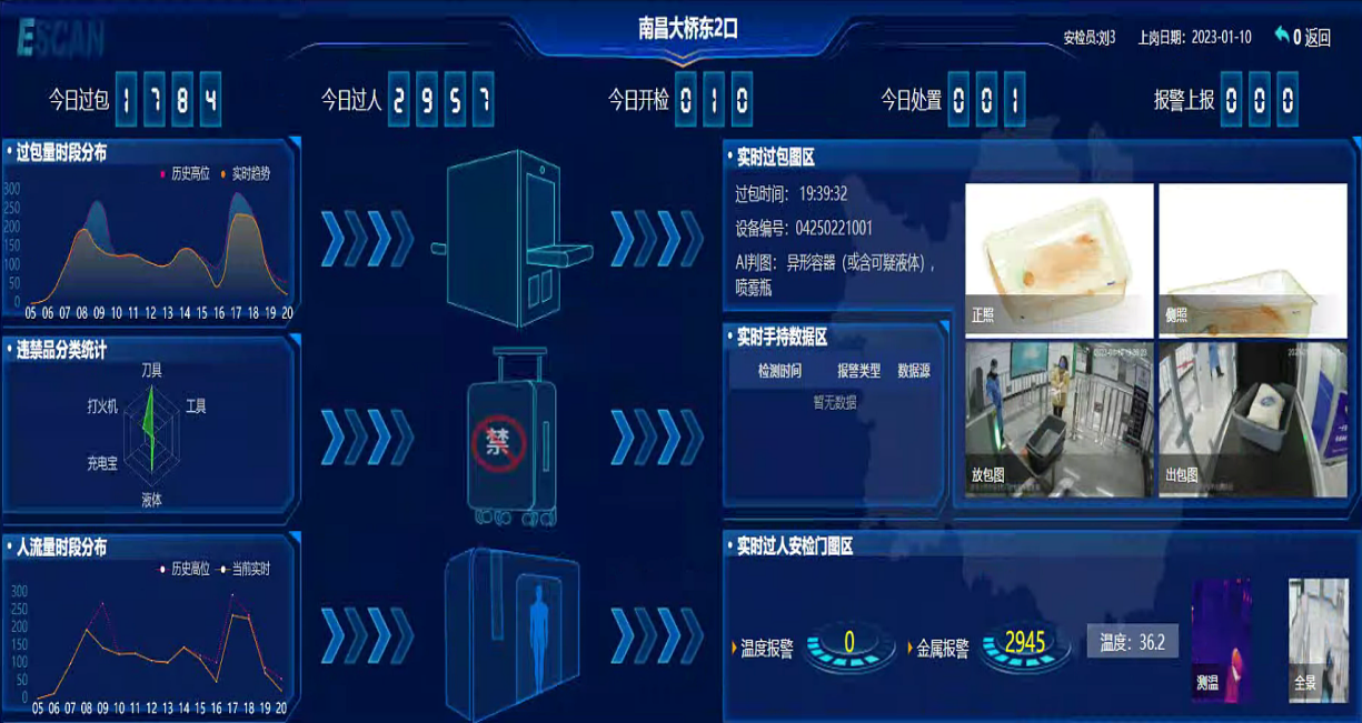 Through network connections and data exchange, images generated by the X-ray machines are transmitted in real time to the remote workstation center. Operators can complete image analysis for multiple checkpoints from a single office. When the system detects a suspicious item, the task is automatically assigned to the corresponding location, prompting on-site staff to conduct a manual inspection.