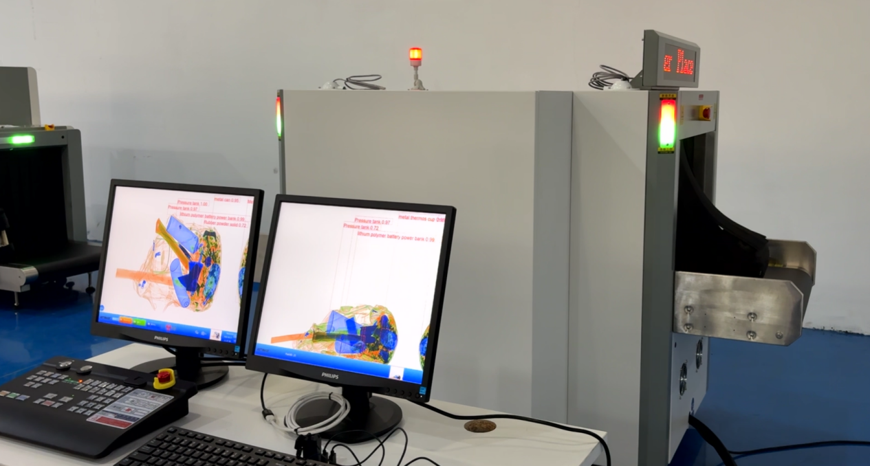 Eastimage X-ray scanner is equipped not only with advanced AI intelligent detection, but also with an enhanced audio-visual alarm system. When luggage passes through the scanner and a dangerous item is detected, the system immediately responds: flashing warning lights + loud alarm sound.