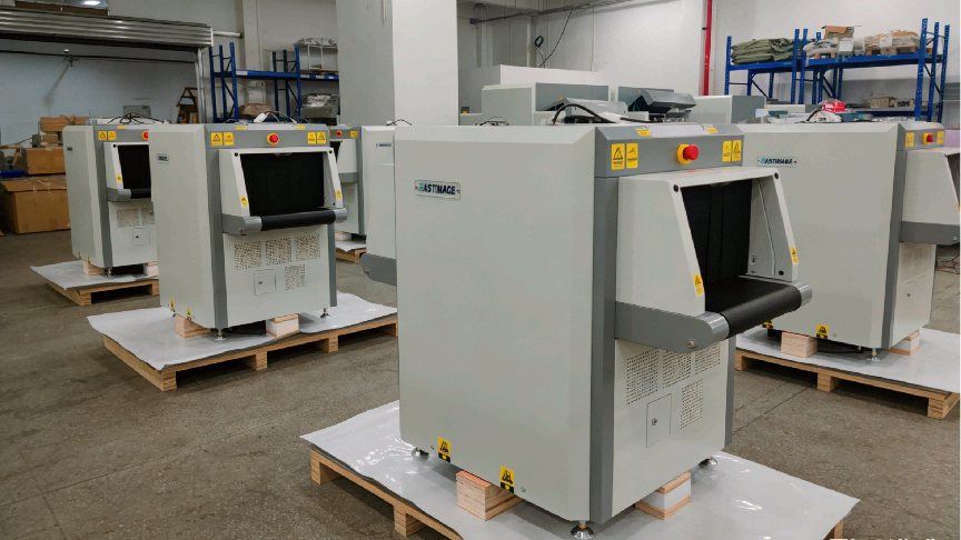 Security inspection machines awaiting packaging in the warehouse